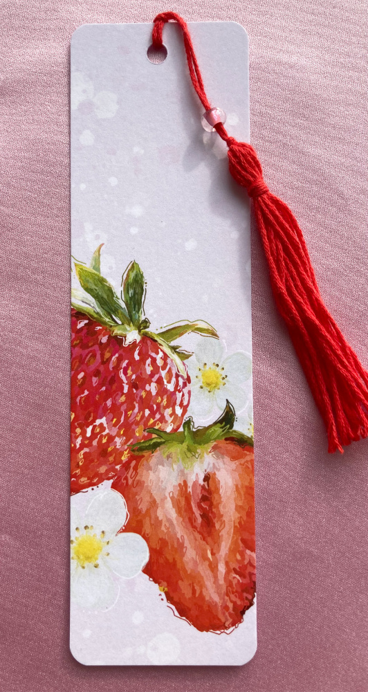 Bokmerke i papir med avrundede hjørner og håndlaget dusk i 100% bomull med dekorativ glassperle. Bokmerket er laget av 350 gr papir og måler 5x17 cm. Duskene kommer i forskjellige farger og kan derfor avvike fra bildene. Legg igjen en kommentar i ordren om du ønsker deg noe spesifikt. Sendes etter 1-4 virkedager.